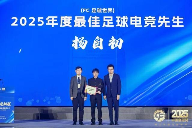 传统足球类奖项之外,2025中国金球奖组委会继续与腾讯互娱合作,连续第九年颁出足球电竞奖项。在过去一年快速进阶的郑州ADJ获得2025年度最佳足球电竞俱乐部,范倬华从一众强手中脱颖而出,获得2025《FC Online》年度最佳足球电竞先生的奖杯,近三年内第二次折桂的杨自初,则当选为《FC足球世界》年度最佳足球电竞先生。